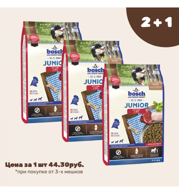 АКЦИЯ Bosch Junior с Ягненком и Рисом для щенков 3кг*3шт