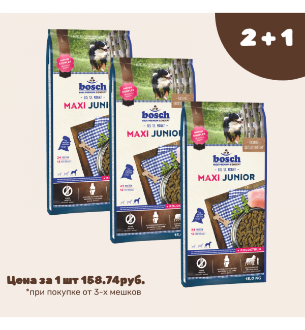 АКЦИЯ Bosch Maxi Junior для щенков крупных пород до года 15кг*3шт