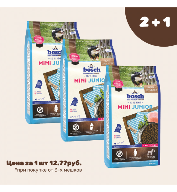 Корм Mini Junior произведён на основе свежего мяса домашней птицы, что придаёт ему великолепную вкусовую привлекательность. Использование экстракта зеленогубчатого моллюска благотворно влияет на развитие хрящей и суставов животного. Благодаря содержанию молозива и специфического иммунного комплекса маннанов и глюканов (разработанных ветеринарами), корм способствует укреплению иммунной системы молодого организма собаки. Форма и размер гранул специально адаптированы для собак небольших и маленьких пород.
