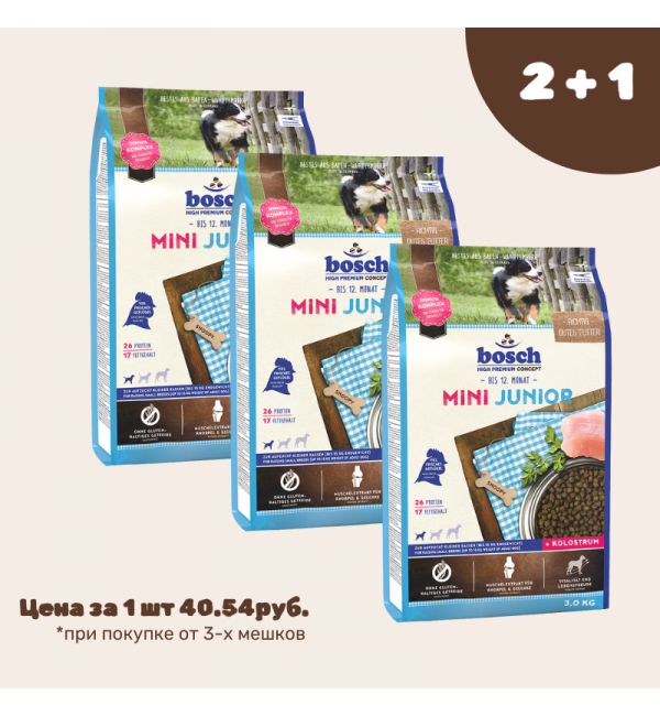 АКЦИЯ Bosch Mini Junior для щенков мелких пород до года 3кг*3шт