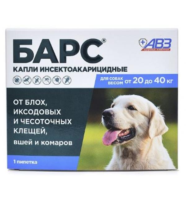 Барс капли против блох и клещей для собак от 20кг до 40 кг 2.68мл