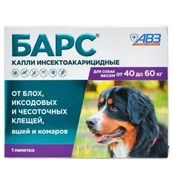 Барс капли против блох и клещей для собак от 40кг до 60 кг 4.02мл