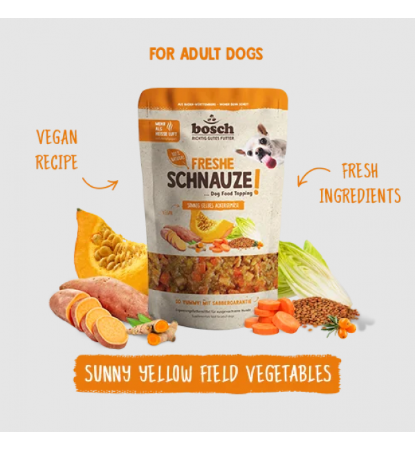 В наши солнечно-желтые полевые овощи Freshe Schnauze мы добавляем только свежие ингредиенты :