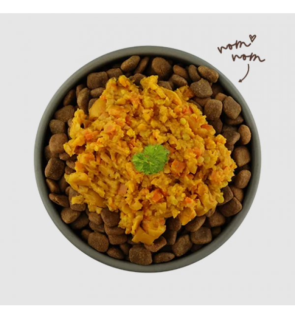 Свежая тыква (35 %), свежая морковь (25 %), свежий батат (10 %), чечевица (2 %), гидролизат белка, подсолнечное масло (0,5 %), цитрусовые волокна, пивные дрожжи (0,2 %), облепиха (0,2 %), уксус, куркума (0,1 %), цикорий (0,05 %).
