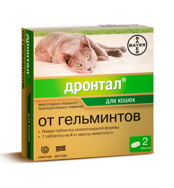 ДРОНТАЛ назначают кошкам с лечебной и профилактической целью при нематодозах и цестодозах.