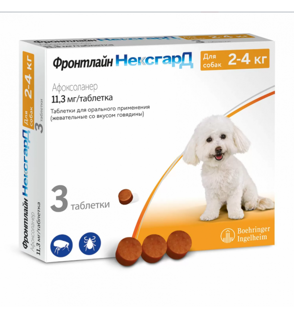 Фронтлайн НексгарД выпускают расфасованным по 3 или 6 таблеток в блистеры из поливинилхлорида и алюминиевой фольги на бумажной основе, упакованные поштучно в картонную коробку вместе с инструкцией по применению.Фармакологические свойства Фронтлайн НексгарД относится к инсектоакарицидным лекарственным препаратам системного действия.