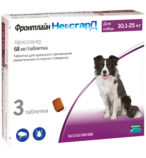 Фронтлайн Нексгард таблетки от блох и клещей 68мг 10-25кг,  1таб.