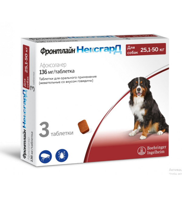 Фронтлайн Нексгард XL таблетки от блох и клещей 136мг 25-50кг, 1таб.