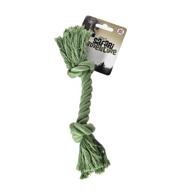 Игрушка из веревки для собак двумя узлами зеленая 22см