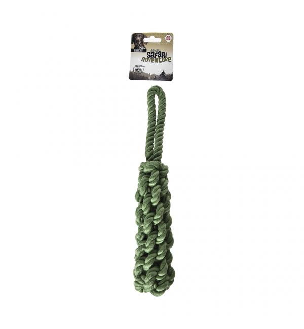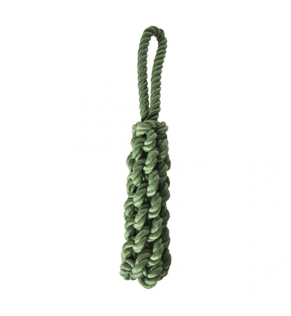 Игрушка из веревки для собак с морским узлом и ручкой зеленая 32см