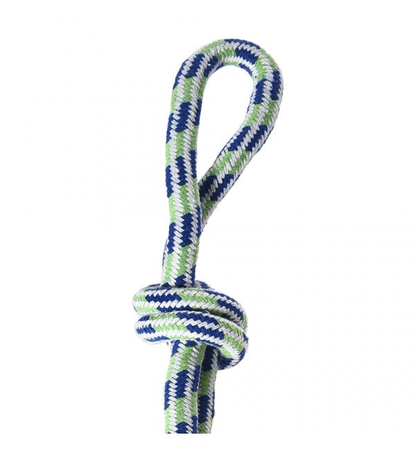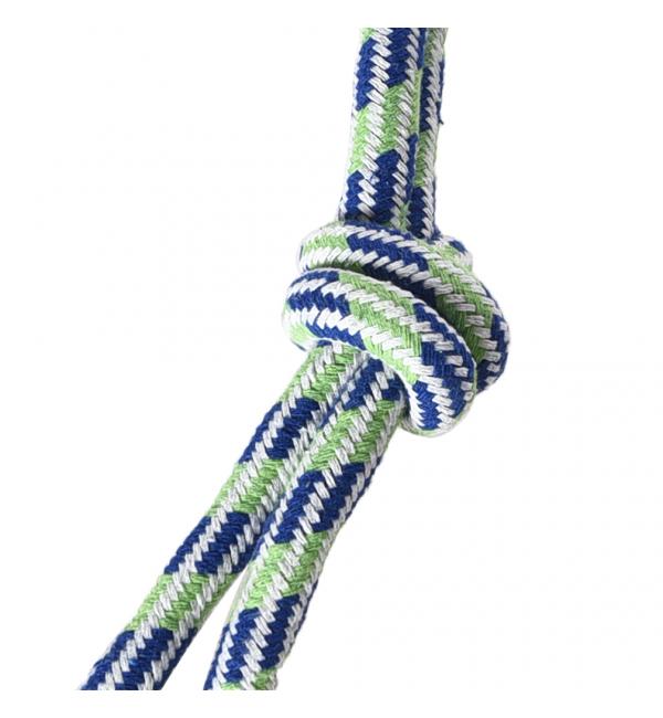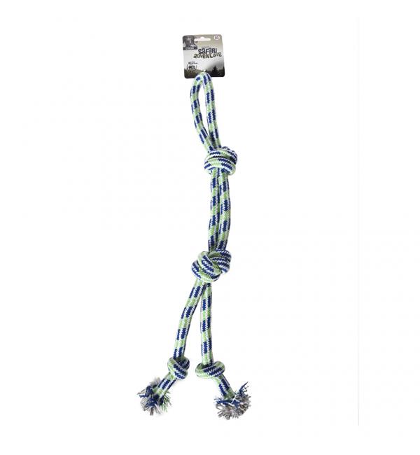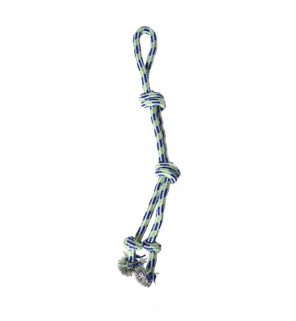 Игрушка из веревки для собак с ручкой и четырьмя узлами сине-зеленая 53 см