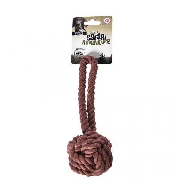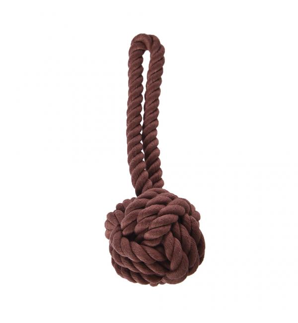 Игрушка из веревки для собак с узлом и ручкой коричневая 20см