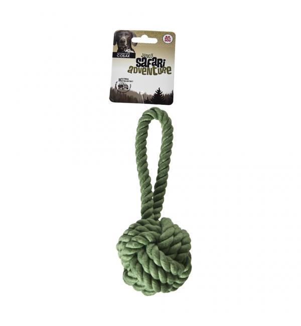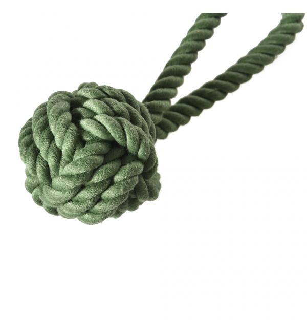 Игрушка из веревки для собак с узлом и ручкой зеленая 20см