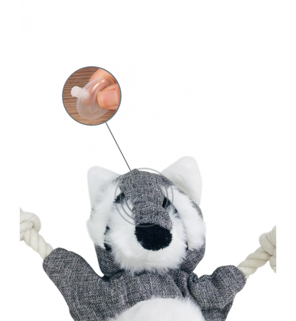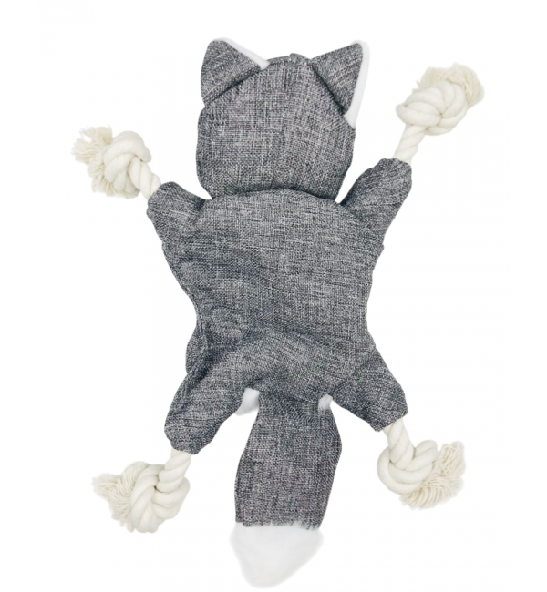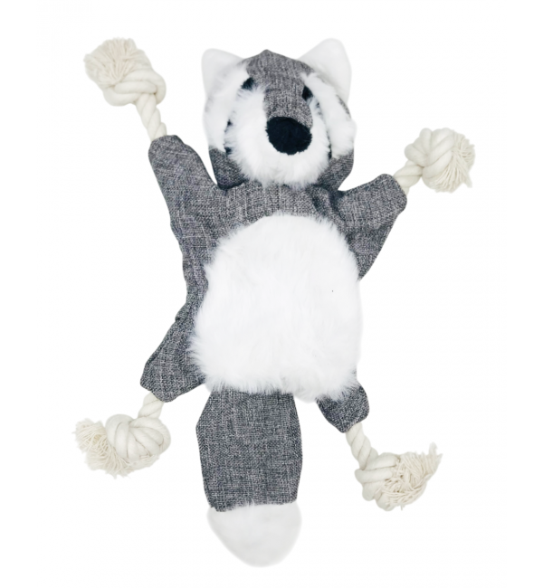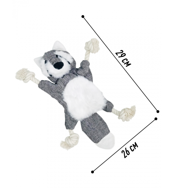Игрушка мягкая для собак "Енот" плюшевая с верёвкой, шуршалкой и пищалкой 32х38см