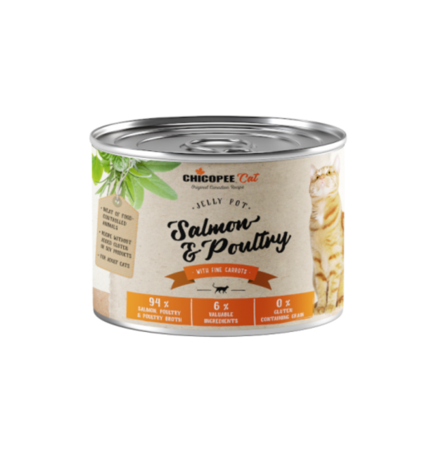 Консерва Чикопи для взрослых котов (желе лосося с птицей) с морковью 195гр