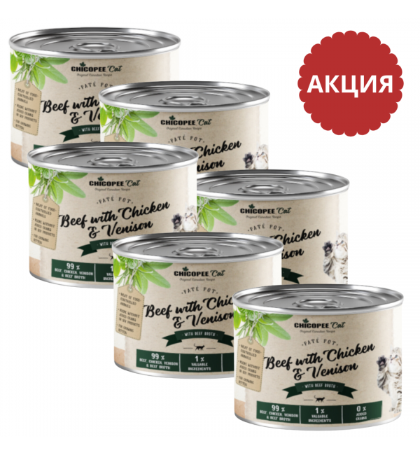 Консерва Чикопи Китэн (говядина, курица и оленина) на говяжьем бульоне 195гр*6