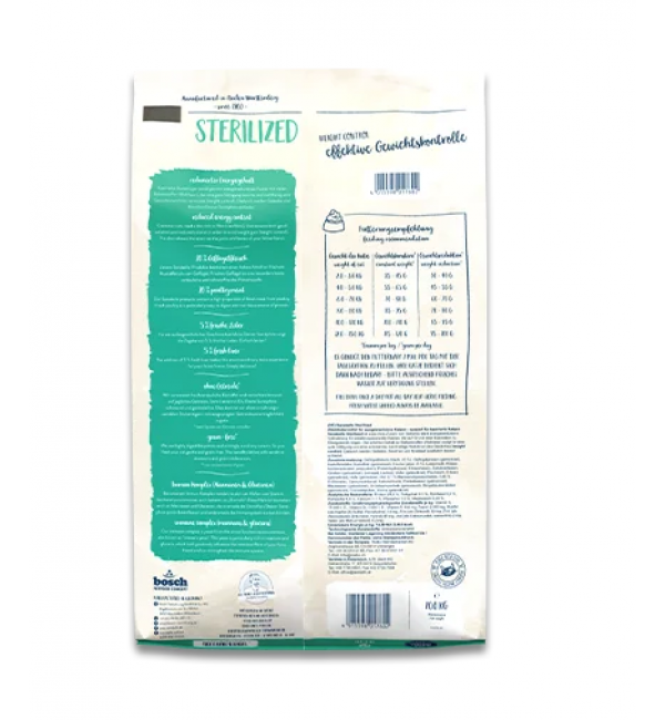 Корм Bosch Sanabelle Sterilized произведён на основе свежего мяса домашней птицы и подходит для взрослых кошек всех пород прошедших процедуру стерилизации. Состав корма, насыщенный питательными веществами и минералами, позволяет кошкам получать все необходимые полезные элементы, способствует нормализации пищеварения и не вызывает аллергий, при этом не позволяет животным полнеть и поддерживает оптимальные пропорции тела. Пониженное содержание жиров помогает контролировать вес животного. Беззерновой рецепт снижает вероятность появления аллергических реакций после процедуры стерилизации.