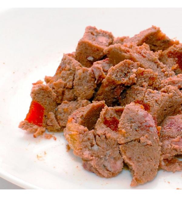 С мясной составляющей до 90% (мясо, субпродукты, а также мясной бульон) и обогащенные, множеством натуральных и ценных ингредиентов животного и растительного происхождения.