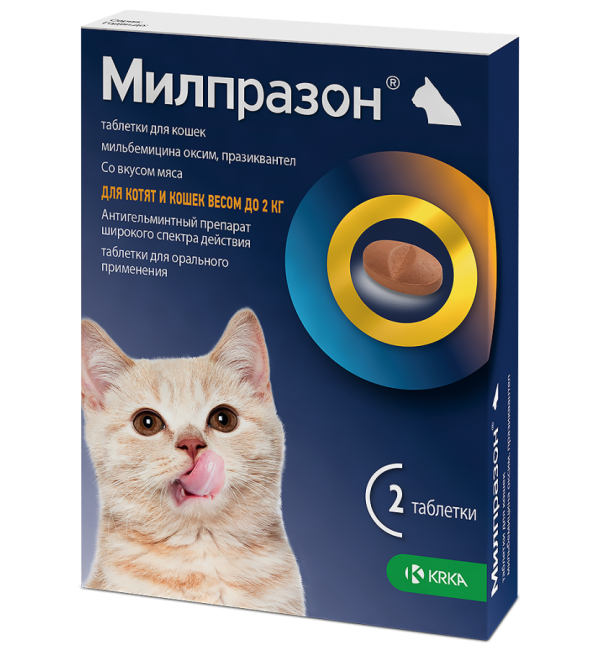 Милпразон® - таблетки для кошек назначают с лечебной и профилактической целью при нематодозах, цестодозах и ассоциативных нематодо-цестодозных инвазиях, вызванных как личиночными формами, так и половозрелыми цестодами и нематодами.