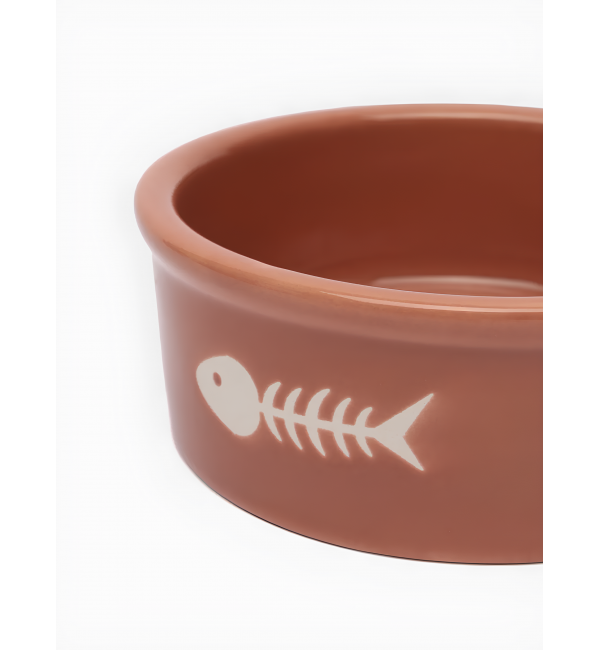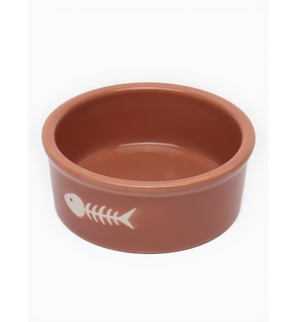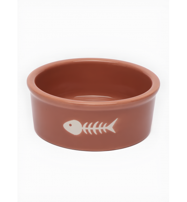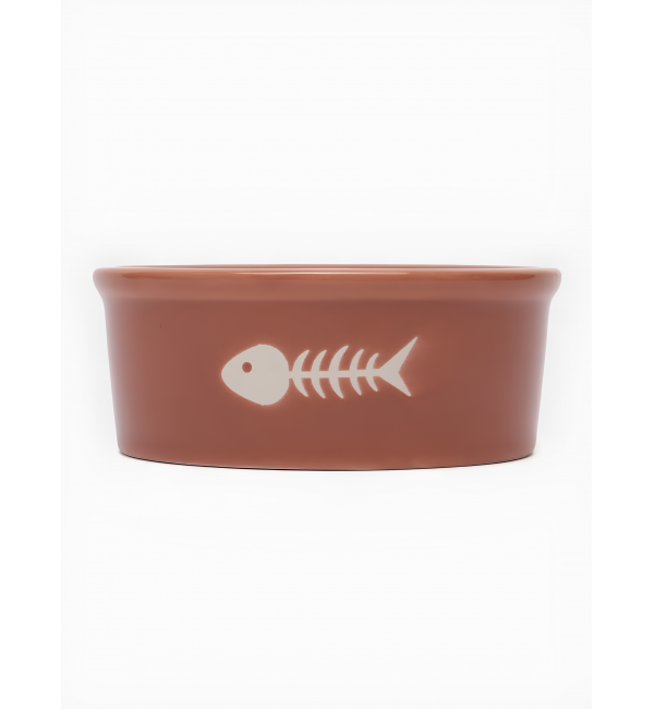 Миска керамическая для домашних животных коричневая с рисунком Скелет рыбы