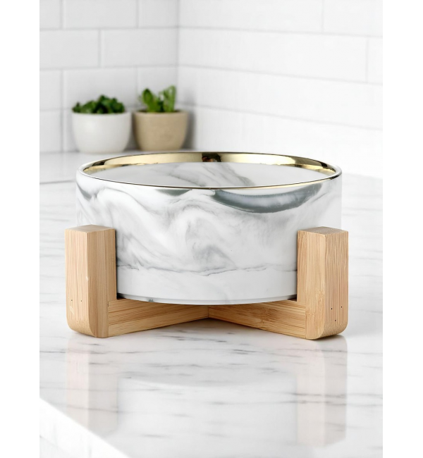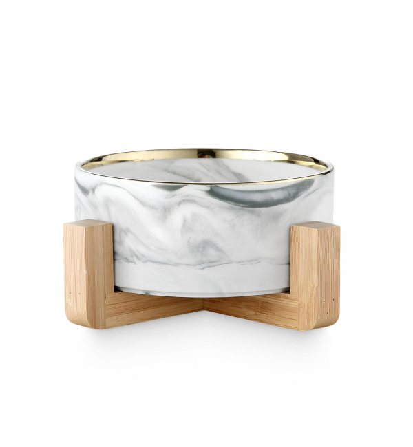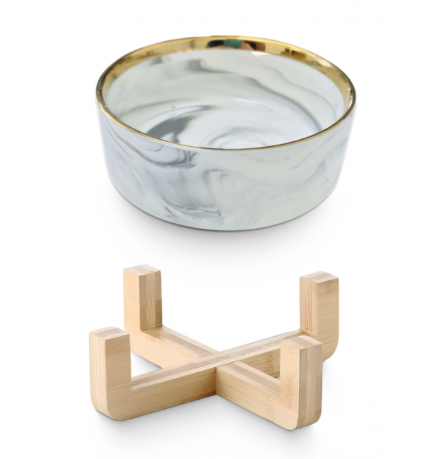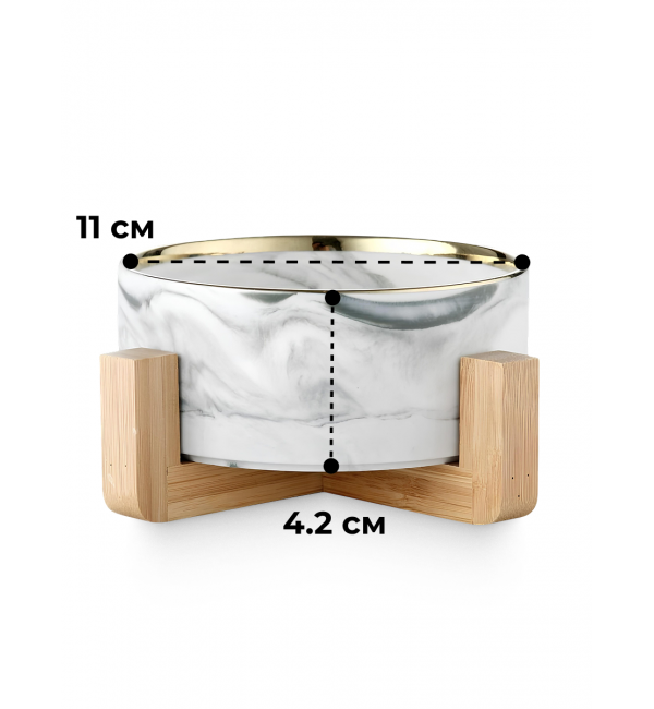 Миска керамическая на подставке БЕЛЫЙ МРАМОР/ЗОЛОТО (0.3л)