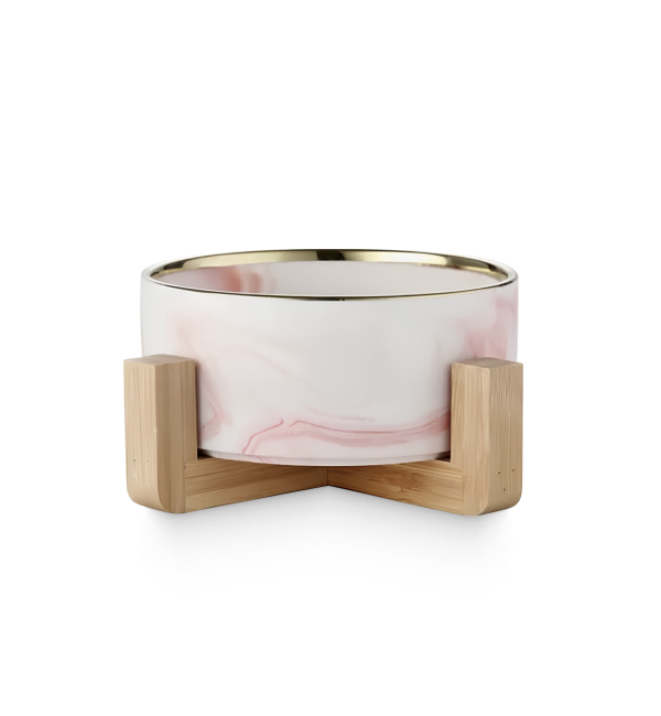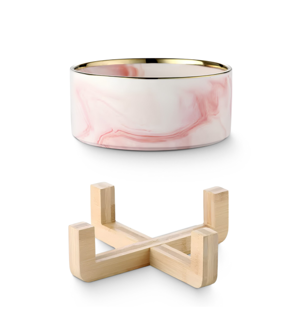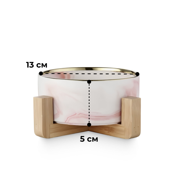 Миска керамическая на подставке РОЗОВЫЙ МРАМОР/ЗОЛОТО (0.4л)