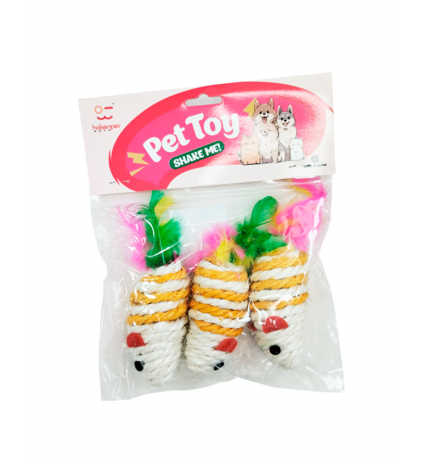 Набор игрушек для кошек Мышка полосатая из сизаля (14 см) 3шт/уп