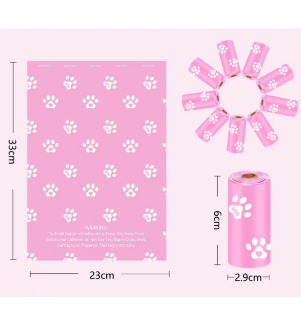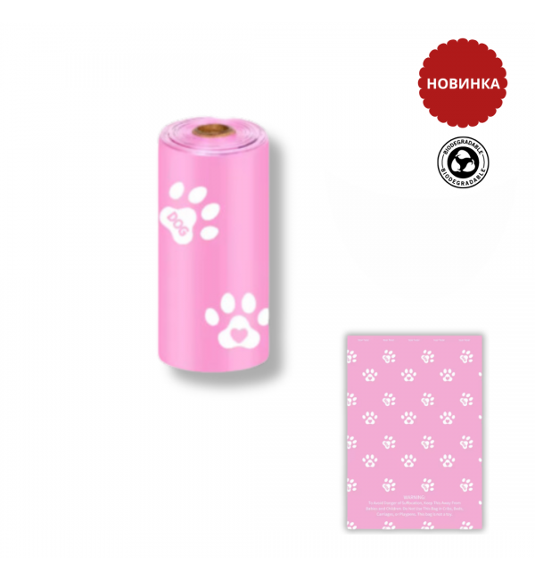 Пакеты для выгула собак розовые биоразлагаемые 1 рулон (15шт)