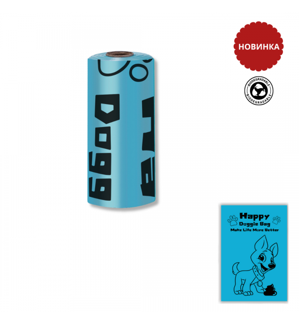 Пакеты для выгула собак синие биоразлагаемые 1 рулон (15шт)