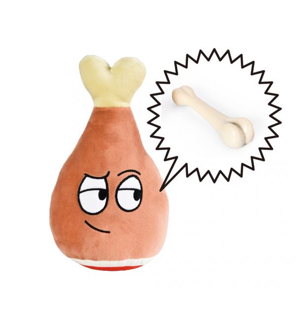 Плюшевая и нейлоновая игрушка 2 в 1 "Куриная ножка" + косточка