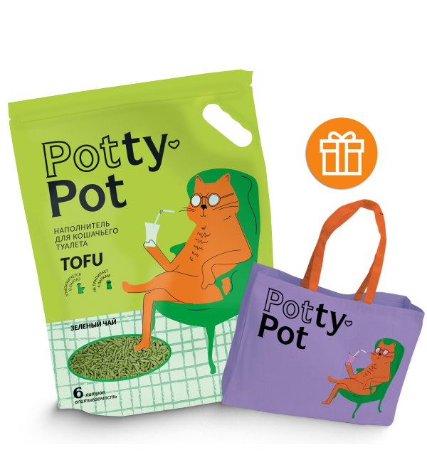 Potty-Pot Зеленый чай наполнитель ТОФУ 2.5кг(6л)+Шоппер