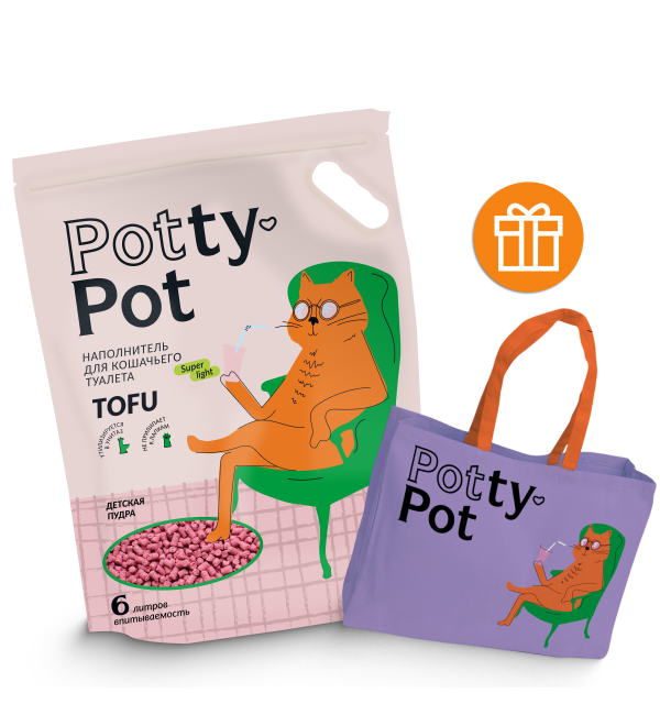 Potty-Pot Супер лайт Детская пудра наполнитель ТОФУ 1,6кг(6л) + Шоппер