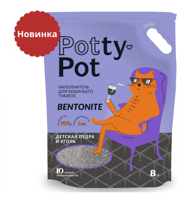 Потти-Пот детская пудра и уголь- это комкующийся бентонитовый натуральный и безопасный наполнитель премиального класса