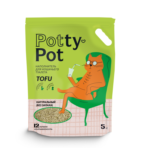 Potty-Pot Натуральный без запаха наполнитель ТОФУ 5кг(12л)