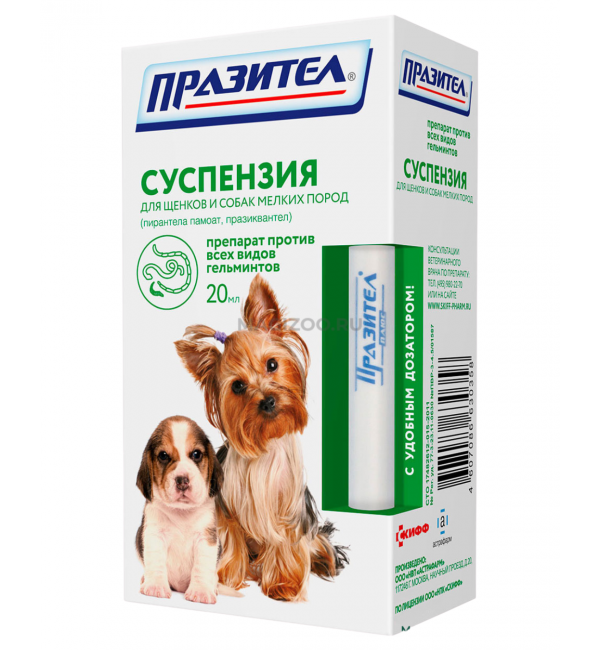 Празител предназначен для лечения и профилактики заражения основными видами круглых и ленточных гельминтов у щенков и собак мелких пород. Выпускается в форме суспензии. Действует всегда. Лечебный эффект при использовании суспензии Празител для щенков и собак мелких пород при однократном применении достигается в 95 — 100 % случаев. Празител безопасен для организма собак. Состав препарата оптимизирован по виду и массе тела животного. Это значит, что побочных эффектов при правильном применении препарата не возникнет.