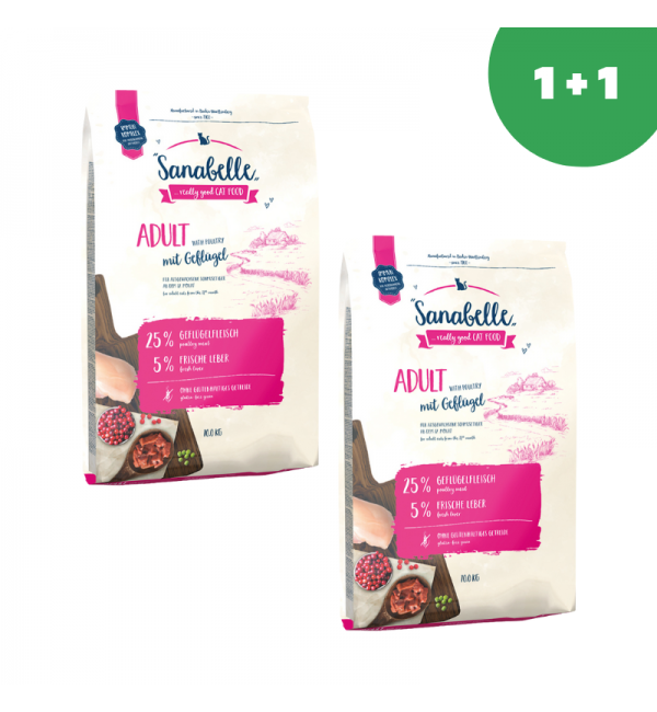 Sanabelle Adult with poultry (Санабелль Эдалт с птицей) - корм для кошек 10кг+10кг