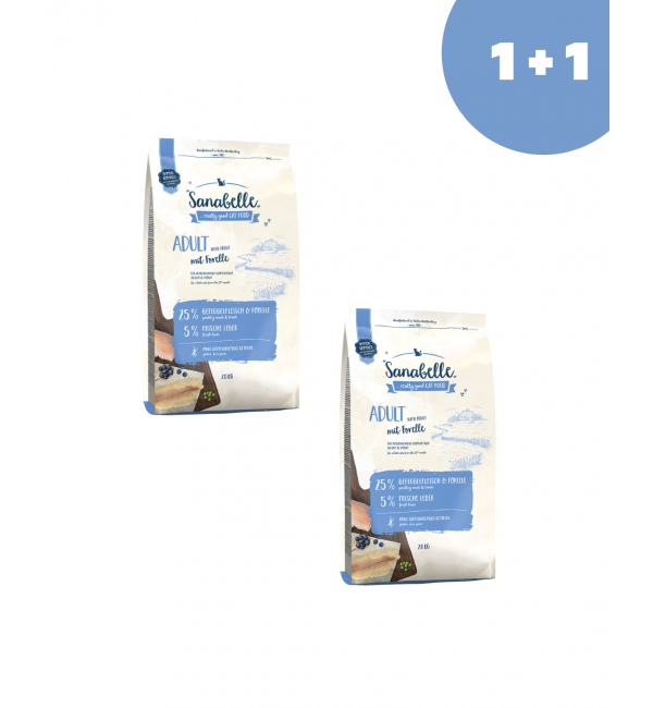 Сухой корм для кошек Bosch Sanabelle ADULT with trout произведён на основе свежего мяса домашней птицы и свежего мяса форели для взрослых кошек всех пород. Корм для кошек Bosch Sanabelle ADULT with trout насыщенный питательными веществами и минералами, позволяет кошкам получать все необходимые полезные микроэлементы и компоненты для здоровья, рецепт способствует нормализации пищеварения и не вызывает аллергий. Сухой корм Sanabelle ADULT with trout легко усваивается и даёт кошкам заряд бодрости и энергии. Использование экстракта зеленогубчатого моллюска благотворно влияет на развитие хрящей и суставов животного. Высокое качество ингредиентов даёт корму насыщенный и выдающийся вкус.