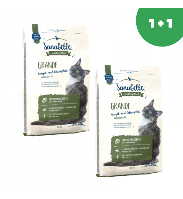 Корм Bosch Sanabelle GRANDE произведён на основе свежего мяса домашней птицы для взрослых кошек крупных пород. Состав корма, насыщенный питательными веществами и минералами, позволяет кошкам получать все необходимые элементы, способствует нормализации пищеварения и не вызывает аллергий. Корм легко усваивается и даёт кошкам заряд бодрости и энергии. Высокое качество ингредиентов даёт корму насыщенный и выдающийся вкус. Использование экстракта зеленогубчатого моллюска благотворно влияет на развитие хрящей и суставов животного. Особая форма и размер крокета специально разработаны для кошек крупных пород. Содержит в 4 раза больше витамина Е, который оказывает антиоксидантное действие в обмене веществ и предотвращает некрозы в печени. Содержание здесь Биотина почти в два раза больше чем в обычных кормах линейки Sanabelle, он препятствует выпадению шерсти и предупреждает преждевременное поседение. Так же этот элемент способствует прочности сухожилий и связок, уменьшению мышечной боли у взрослых кошек.