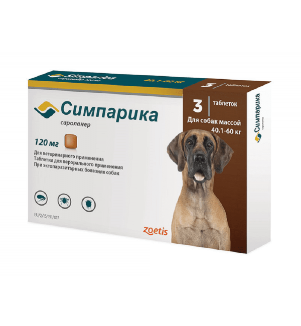 Симпарика для собак 40,1-60 кг (120 мг) 1таб.